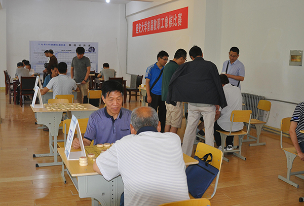 7月1日,校工会举行了首届教职工象棋比赛。白泽生主席致开幕辞,武忠远副校长向棋牌协会授了旗,来自学校各单位的32位选手参加了比赛。参赛选手分成4个小组进行了小组循环赛,各小组前两名进入决赛,最终附属医院王少波获得冠军,监察处宋智鹏获得亚军,历史系张春海获得季军。