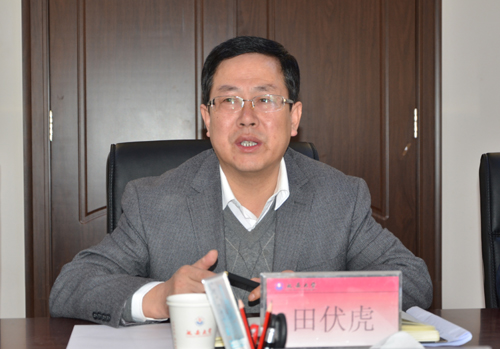 在逸夫楼第一会议室,考察团与我校党委副书记田伏虎,以及两办、纪委的负责人等,进行了座谈交流。