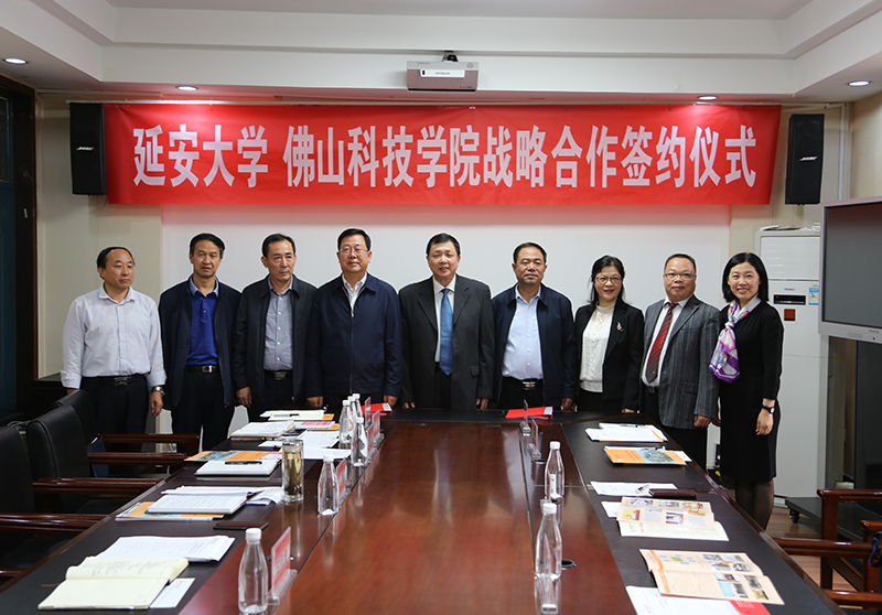 本网讯 9月13日下午,为了贯彻落实中共延安市委书记徐新荣在考察广东时促成的对口合作意向,延安大学与佛山科学技术学院在逸夫楼第三会议室举行战略合作协议签约仪式。我校党委副书记田伏虎、党委委员刘述进、姚正宽、杨亮才,佛山科学技术学院党委书记曾峥、党委委员卢建红,以及双方学校有关部门的负责同志参加了签约仪式。仪式由我校党委副书记王顺主持。