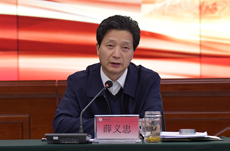薛义忠书记在座谈会上作了题为《学习贯彻庆祝改革开放40周年大会精神, 奋力推进更有特色更有水平大学建设》的发言交流,薛书记指出:一是要准确把握庆祝改革开放40周年大会和习近平总书记重要讲话精神的核心要义,全面准确把握“十个始终坚持”、“九个必须坚持”,立足学校改革发展实际,牢记总书记“勇于改革创新”的嘱托,切实把学习成果转化为更有特色、更有水平大学建设的生动实践;二是要认真总结改革开放40年来延安大学管党治党、办学治校的艰辛探索,坚定新时代办好延安大学的信心和决心,牢把办学正确方向,提升人才培养质量,深化改革创新、全面开放发展;三是要坚持问题导向,针对人才培养能力不强、学科特色不突出、科研和服务社会能力不强、教职工动力不足、人才队伍建设滞后、地域限制和办学资源短缺、内部管理粗放、基层党组织建设薄弱等方面的问题,进一步深化改革创新,全面推进更有特色、更有水平大学建设。