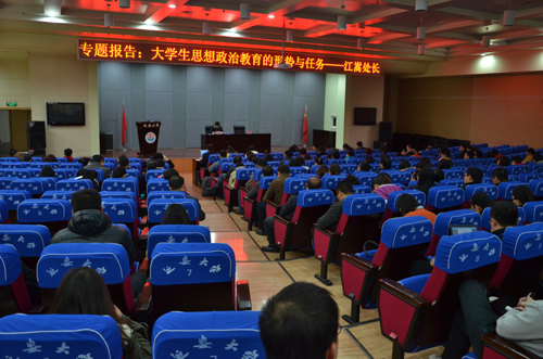 报告中,江嵩处长首先分析了大学生思想政治教育工作面临的新形势:意识形态领域斗争的复杂性、大学生群体的个性需求、现代传播技术的发展对思想宣传文化的冲击。江嵩处长就如何把握当代新形势与大家进行了交流。他指出,网络技术和体系发展带来的巨大变化在学生的思想教育工作方面呈现的复杂性,需要我们学习技术,建立体制,形成机制,把现实世界的工作和虚拟世界的工作结合起来,全面适应互联网时代和大数据时代的工作需要。他要求辅导员提高识别能力、对于各种非马克思主义思想的抵御能力和对于形势与工作的把握能力,探索新的、更加有效的教育机制和管理方法。随后,江嵩处长从六个方面指出了大学生思想政治教育的重要任务:一是深化中国梦的宣传教育;二是着力推进实践育人的工作;三是大力加强校园文化建设;四是进一步加强心理健康教育;五是高度重视和加强高校辅导员队伍建设;六是加强思想政治理论课的学科建设。江嵩处长的报告站在教育部的高度,介绍了新形势,谈了全国高校思想政治工作面临的问题,以及教育部今后工作的设想和已经采取的措施,为我们明确了今后工作的重点和方向,起到了提高认识、明确思想、振奋精神、增强队伍和强化责任的作用。