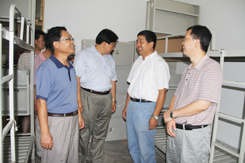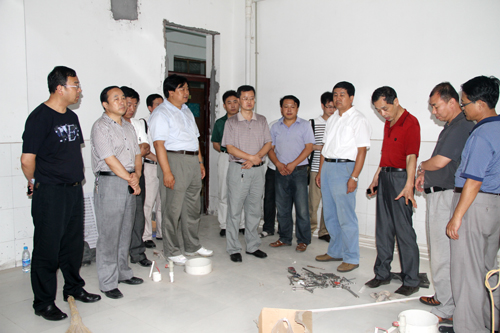 本网讯 今天下午,校领导崔智林、田伏虎、吴耀、许静洪、张威虎、胡俊生、马勇、陈华,带领党办、校办、组织部、宣传部、纪委、教务处、学生处、财务处、人事处、后勤处、房产处、基建处、后勤集团、保卫处、国资处、共建办等部门的负责同志,分为两个小组,对全校开学前的各项准备工作进行了检查。检查内容包括教室、实验室、办公室、餐厅、校园环境卫生及各单位、各学院的开学准备和教职工报到情况,基建项目、维修工程的进展情况,稳定安全隐患排查的基本情况。