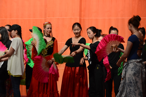 座谈会结束后,北京舞蹈学院师生与鲁艺师生在我校5·23音乐厅进行了舞蹈交流互动。交流节目有北京舞蹈学院的学生表演的藏族舞蹈片段《纳木错》、维族舞蹈《花儿为什么这样红》、拉丁舞片段和韩国舞蹈《太平舞》等,以及鲁艺学生表演的的陕北民歌《东方红》、《圪梁梁》和双人舞《陕北情歌》等。最后,交流活动在热烈奔放的《陕北大秧歌》的互动中结束。