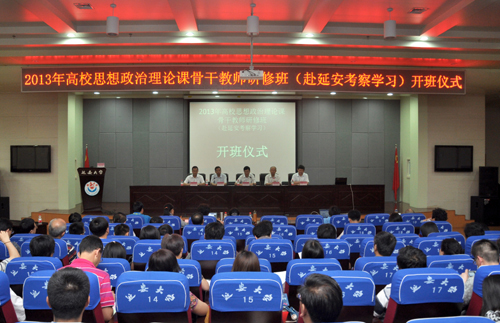 本网讯 今天下午,由中宣部和教育部主办、国家教育行政学院和我校分阶段共同承办的2013年第三期和第四期高校思想政治理论课骨干教师研修班开班仪式在我校图书馆学术报告厅举行。我校党委副书记田伏虎,国家教育行政学院社会科学教研部主任许玉乾,我校党委委员、宣传部部长、泽东干部学院院长张高旗,以及研修班全体学员参加了开班仪式。开班仪式由张高旗部长主持。