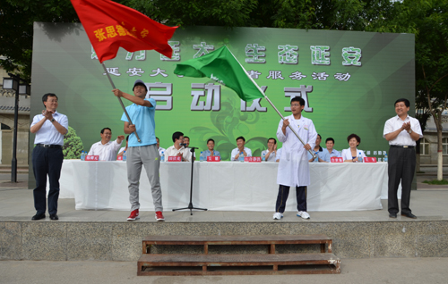 随后,吴耀区长和许静洪副校长分别为“张思德志愿者服务队”和“白求恩医疗服务队”授了旗。全体志愿者宣誓并承诺:弘扬张思德精神和白求恩精神,全心全意为人民服务,尽己所能,帮助他人,服务社区,传播文明。为建设美丽延大,生态延安贡献力量。