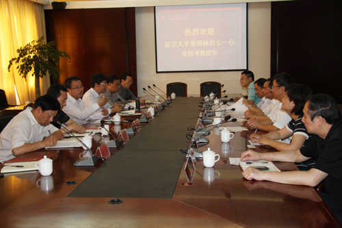 本网讯 5月13日下午,我校党委副书记、校长崔智林,副校长张威虎,校办主任姚正宽、后勤处处长台世强、后勤集团总经理李广山、国际交流处处长吴卫东一行赴江西师范大学调研考察,江西师范大学党委副书记何小平,党委委员、副校长黄加文,以及党委(校长)办公室主任丁晖、国际交流处处长侯桃、后勤保障处处长龚水平、后勤集团党总支书记杜群兴参加了座谈会。双方就学校内部管理与改革、后勤管理改革、国际交流合作等方面进行了广泛交流。