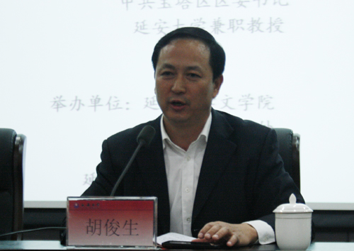 本网讯 5月14日下午,应我校文学院、社科处和公共管理研究所的邀请,延安市人大常委会副主任、延安市宝塔区区委书记、我校兼职教授祁玉江在图书馆报告厅为我校师生作了题为《提高行政“三力”——决策力、执行力、推动力,促进管理“三化”——标准化、规范化、精细化》的学术报告。文学院及有关单位负责人、文学院行政管理专业研究生,以及部分本科生300余人参加了报告会。报告会由我校副校长胡俊生主持。