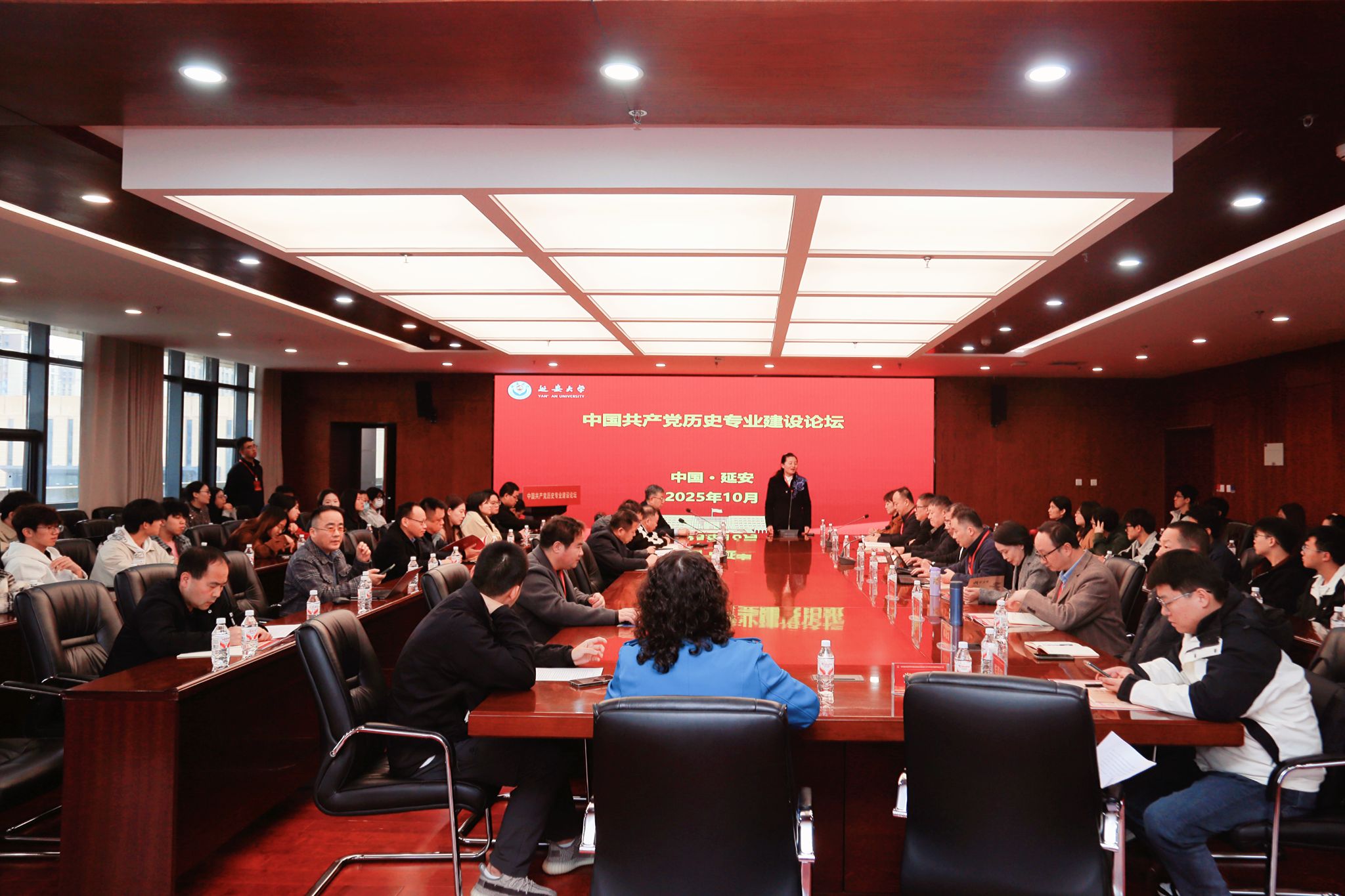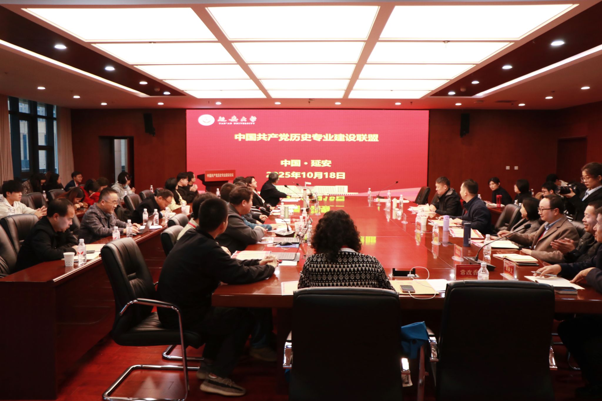 18日下午,中国共产党历史专业建设论坛举行,来自中国人民大学、武汉大学、湘潭大学、井冈山大学、赣南师范大学、河南师范大学、山东师范大学、广西民族大学、渭南师范学院、黑龙江工业学院、安顺学院、延安大学等12所高校的中国共产党历史本科专业负责人参加,这是全国12所中国共产党历史本科专业高校首次齐聚开展专业建设研讨。延安大学教务处处长王进应邀介绍了我校本科专业概况及本科教育特色;延安大学学科建设与发展规划处处长张雪梅应邀介绍了我校学科概况及优势特色学科发展情况。12所高校中国共产党历史本科专业负责人介绍了本校中国共产党历史专业的发展历程、课程体系、师资结构、招生现状、教材选用、办学特色和学生就业。会上,延安大学发起倡议,成立中国共产党历史专业建设联盟,得到与会高校一致呼应。会议闭幕式由延安大学政法与公共管理学院党委书记崔林立主持,延安大学政法与公共管理学院院长常改香作会议总结。