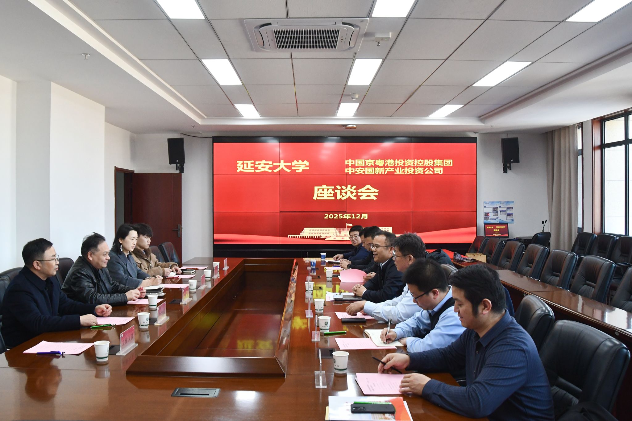 奚家米代表学校对李栋良一行的到访表示欢迎,并详细介绍了学校的办学历史、学科特色以及在人才培养、科学研究和社会服务等方面取得的成效。他指出,学校始终坚持“立足地方、融入地方、服务地方”的办学方向,当前正在深入推进支持服务延安发展三年行动计划。他强调,中国京粤港投资控股集团未来六大绿色产业布局,特别是在延安和西北地区布局的新能源、新材料和绿色农业等项目,与我校相关学科发展和人才储备具有高度契合性。期望通过深化校地、校企合作,促进科技创新与产业需求对接,共同为区域经济社会发展贡献力量。