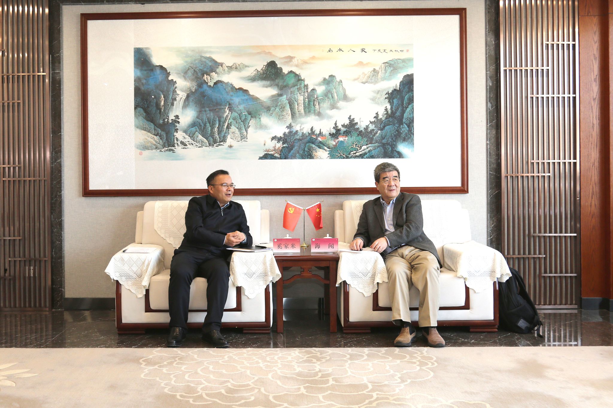 奚家米对海闻教授的到来表示欢迎,并对北京大学汇丰商学院及乡村发展公益慈善基金会长期以来对延安大学乡村发展研究院及学校整体建设发展的关心支持表示衷心感谢。他介绍了学校深入推进“三个示范校”建设,大力服务区域经济社会发展有关工作情况。他指出,要聚焦乡村发展现状和社会需求,不断加强学院学科建设和人才队伍建设;要加快推进研究生培养方案调整,深化校际协作和联合培养,不断提升研究生培养质量;要围绕南泥湾品牌项目建设,努力打造校地融合发展标杆,为服务区域经济社会发展作出延大贡献。
