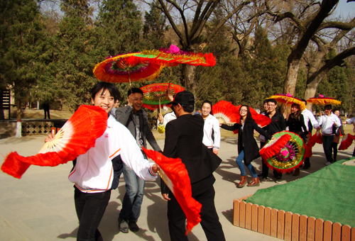 志愿者们带去了防裂膏、护手霜等贴心的小礼物,赠送给环卫工人,并帮助他们认真清理了枣园和杨家岭革命旧址的每一个角落,在劳动中体验帮助他人的快乐。随后,志愿者们为环卫工人、讲解员和游客们表演了自己准备的文艺节目,一曲《为了谁》让人暖意浓浓,一首《想起东方红》唱出了对伟人的缅怀之情,《套马杆》带来了草原的清新。节目最后,志愿者们还与环卫工人、讲解员和游客们共同扭起了陕北大秧歌,在互动中,将互助互敬、友爱和谐的雷锋精神进行了生动的诠释。活动结束后,志愿者们在讲解员的带领下,参观了枣园和杨家岭革命旧址,再一次接受了革命传统教育的洗礼。志愿者们还前往张思德“为人民服务”纪念碑前,缅怀了张思德同志和毛主席的《为人民服务》的讲话。