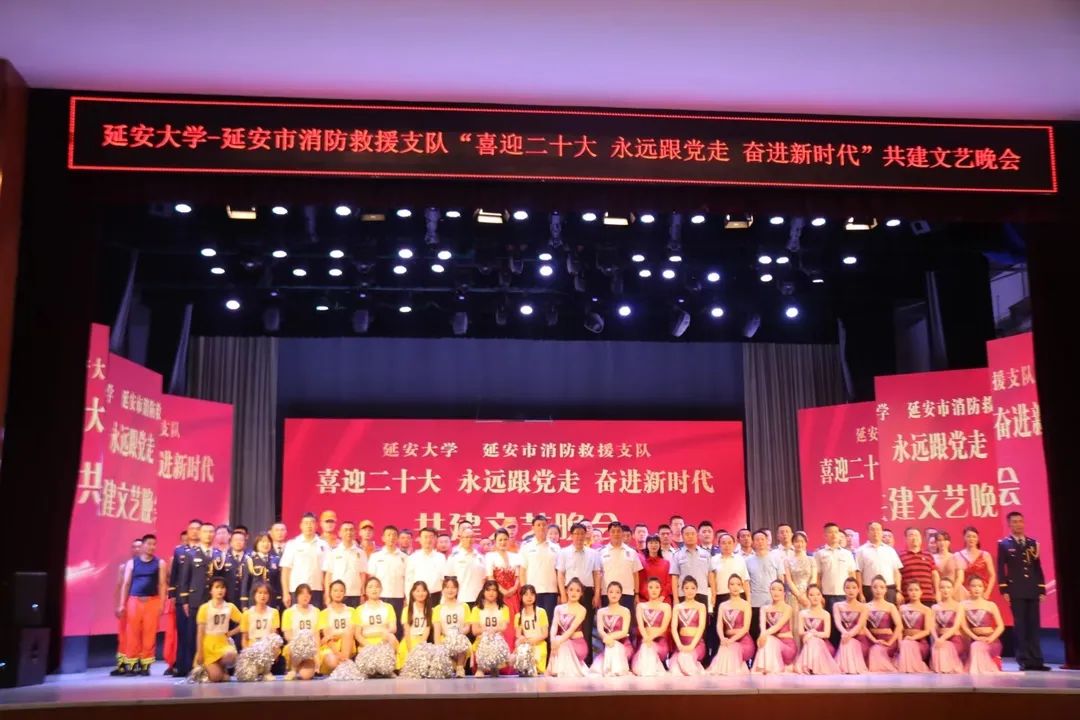 本网讯 6月20日晚,延安大学与延安市消防救援支队“喜迎二十大,永远跟党走,奋进新征程”“消校”共建活动暨文艺晚会在杨家岭校区大礼堂举办。延安大学副校长吕达,延安市消防救援支队支队长程明辉、政治委员马应全、副政治委员印天扬,延安市消防救援支队以及延安大学保卫处、鲁迅艺术学院、体育学院、文学院等负责同志参加了相关活动。