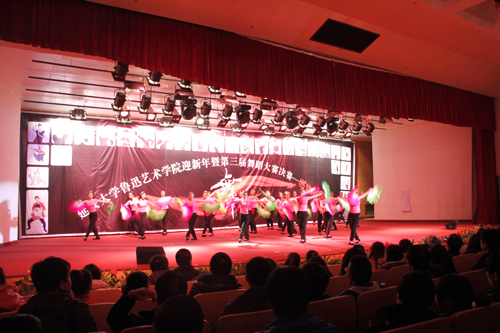 本网讯 12月21日晚,由延安大学教务处和鲁迅艺术学院主办的“迎新年”暨鲁艺学院第三届舞蹈大赛在星海楼5·23音乐厅举行。延安市文化广电新闻出版局副局长安世平,延安市艺术中心副主任、延安市群众艺术馆馆长陈永龙,延安市歌舞团党委副书记王建军,我校教务处处长武忠远,鲁迅艺术学院院长刘常喜和院长助理、舞蹈教研室主任荆玉环应邀担任了比赛的评委。我校400余名师生观看了比赛。