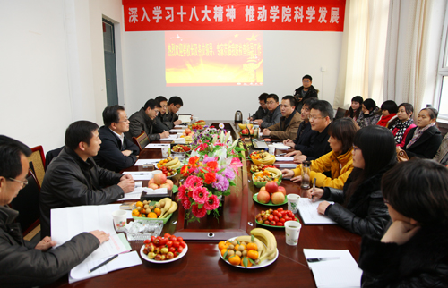 会上,能源学院党委书记白亚军汇报了学院党建工作及学习十八大精神情况,副院长贺亚维汇报了教学工作情况,学院党委副书记张翔汇报了学生思想政治教育工作情况,张琰图院长从能源学院现状、存在问题和发展思路等方面对学院学科建设及科研工作等整体情况进行了说明。