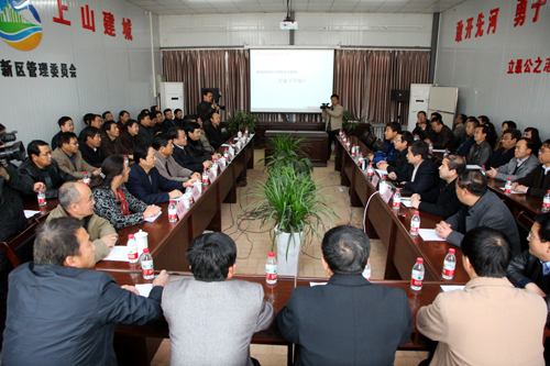 薛占海副市长在讲话中说,延安新区建设是市委、市政府实施“中疏外扩、上山建城”战略的必由之路,既有利于缓解城区土地后备资源的不足,又对保护好老城区革命旧址、促进旅游产业发展、拉动经济健康持续增长、改善人居环境具有重大而深远的意义,受到了中省市和社会各界的广泛关注。工程自开工以来,广大建设者们抢时间、抓进度、赶工期,全力推进了新区建设的各项工作。作为我党创办的第一所综合大学,近年来,延安大学为延安经济社会发展提供了强有力的人才与智力支持,成为延安老区人民深感自豪的名片。在十八大即将到来之际,延安大学党政领导带领学校领导干部来到新区参观学习,这是对新区建设和延安未来发展的关心与支持。作为圣地高等学府,延安大学人才济济、专家汇聚,希望在新区建设中,延安大学能一如既往给予支持,为新区建设多提宝贵意见和建议;希望延安大学发挥自身优势,通过人才输送和校地合作等方式,为新区建设提供更多人才、技术的支持和帮助;希望通过新建项目、置换土地等方式,延安大学能积极投身和参与到新区建设中,实现校地合作的多元化。