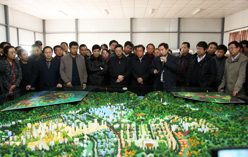 到达延安新区后,薛占海副市长首先带领我校校处级领导干部,远眺新区北区全貌,参观新区施工现场,并介绍了视野中新区的建设情况。随后,我校参观团与延安新区管委会领导来到室内新区规划模型前,观看了新区宣传片。看完宣传片后,我校校处级领导干部与新区管委会主要成员举行了座谈。