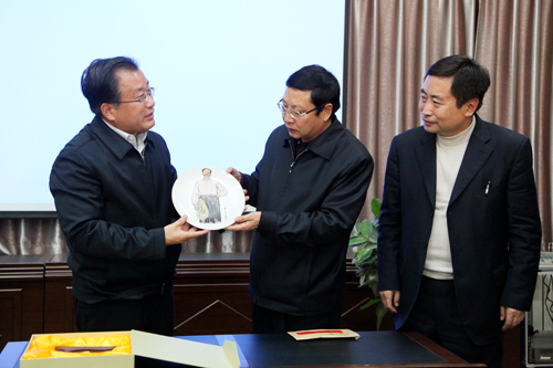 座谈结束后,崔智林校长代表我校,向延安新区管委会发放慰问金并赠送了纪念品。