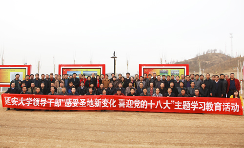 本网讯 为了迎接党的十八大的胜利召开,进一步拓宽干部教育培训的新方式,不断加强学校与延安新区的紧密联系,更好地发挥高校服务地方经济社会发展的功能,今天下午,党委副书记、校长崔智林,党委副书记王亚杰,副校长许静洪、张威虎、胡俊生,带领全校100多名正处级领导干部乘车前往延安新区,参观了新区施工现场,听取了有关情况介绍,并与中共延安市委常委、常务副市长、延安新区管委会党工委书记薛占海及新区有关负责同志进行了交流,开展了主题为“感受延安新变化,喜迎党的十八大”的干部教育活动。