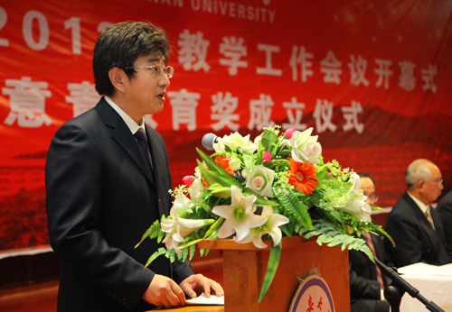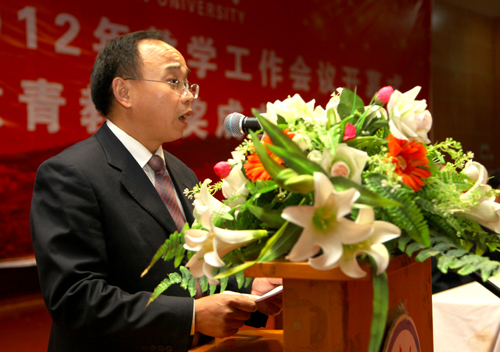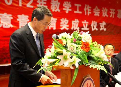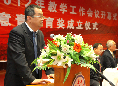 许静洪副校长在会上致了辞。他在致辞中回顾了我校外国语学院的历史,并向刘意青教授和多年来为学校教育事业的改革、建设和发展默默奉献和做出重要贡献的几代外语人表示了衷心的感谢,同时祝愿会议取得预期成效,为我校外语教育教学工作开辟新的局面。外国语学院院长梁润生在会上作了题为《立足育人根本,突出教学中心,为全面提高外语教育教学质量而努力奋斗》的主题报告。他在报告中回顾和总结了学院2010年教学工作会议以及2011年学科建设工作会议以来,外国语学院在教学、科研和管理工作中所取得的成绩和经验,对存在的问题与不足进行了剖析,并提出了今后的工作设想。梁润生院长在报告最后,还动情地回忆了刘意青教授20年来对延安大学外国语学院的无私帮助和奉献,并对她致以了深深的敬意。
