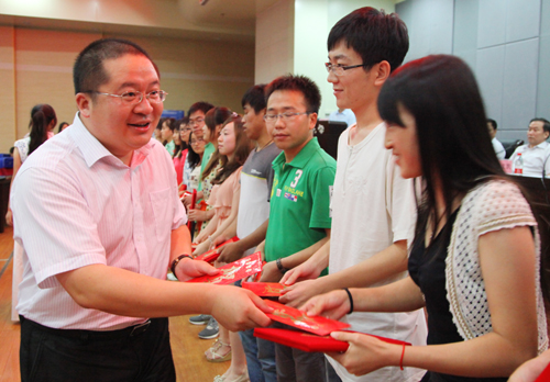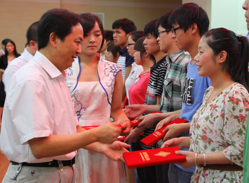 黄海董事长向获得2012年励志奖学金的同学颁发奖学金及证书
