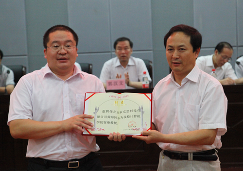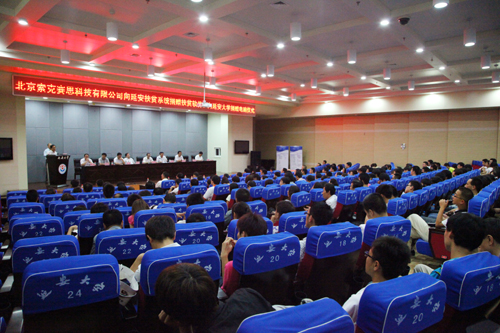 随后,黄海董事长代表北京索克赛思科技有限公司,向我校捐赠了46台、价值30万元的电脑,用于建设延安大学索克赛思计算机实验室,胡俊生副校长代表我校接受了捐赠,并向黄海董事长颁发了延安大学计算机学院客座教授聘书,以及延安大学毕业生就业见习基地牌匾等。