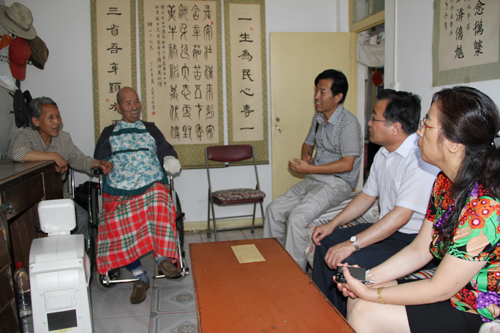 在生活困难老党员张一三家中,崔智林首先关切地询问张一三同志的身体情况,关切地询问了他们生活中存在的困难,并通知有关部门负责人员及时帮他们解决。