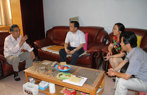 本网讯 6月27日下午,在党的九十一岁华诞到来之际,校领导崔智林、许静洪及组织部、离退处、人事处、医学院等有关部门负责人,分为2个小组,分别走访慰问了老党员、生活困难党员和各类先进模范人物中的共产党员。每到一处,校领导们都与老党员、老同志们亲切握手,关切地询问生活、起居和家庭情况,并向他们送上慰问金,感谢他们为国家和学校建立的业绩,祝愿他们生活快乐、健康长寿,希望他们为延安大学各项事业的发展做出新的贡献。