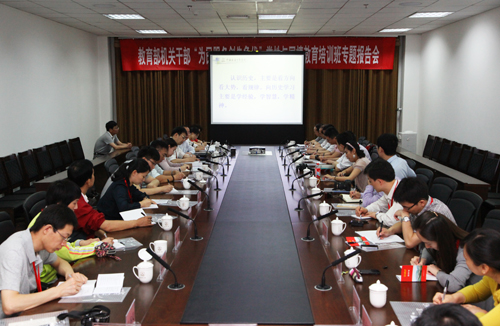 本网讯 为了全面落实教育规划纲要,扎实开展“为民服务创先争优”活动,大力推进教育部机关学习型党组织建设,今天上午,教育部机关干部“为民服务创先争优”党性与国情教育培训班的28名学员,在教育部机关党委组织宣传处处长郭宇光的带领下,来我校学习。