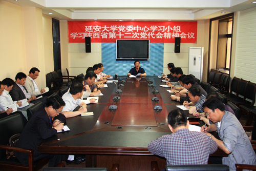 本网讯 5月16日下午,党委中心学习小组在第三会议室举行扩大会议,专题学习了陕西省第十二次党代会会议精神,校党委中心组成员,各学院党委、党总支、直属党支部书记等参加了学习会。学习会由宣传部副部长李宝怀主持。