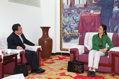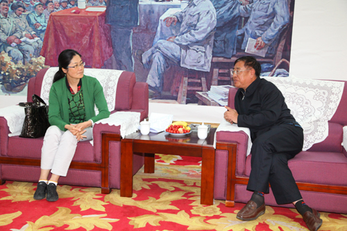 本网讯 今天上午,冒着淅沥的小雨,国家发改委社会发展司副司长王凤玲来我校视察并指导工作。我校领导刘建德、崔智林、许静洪、张威虎,以及纪委、党办、校办、财务处、基建处、规划处、研究生学院、教务处、保卫处、校史办、新闻中心、影视制作中心等部门的负责同志,在图书馆贵宾室与王凤玲副司长进行了座谈。