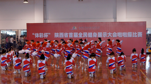 本网讯 5月4日至5日,由陕西省体育局和省体育总会主办、西安体育学院承办的全省首届全民健身展示大会啦啦操比赛,在西安体育学院举行。陕西省体育局副局长吴长龄、省群体处副处长赵军出席了开幕式,来自全省大、中、小学校的11支代表队的400多名选手参加了比赛。