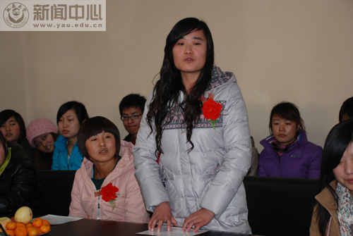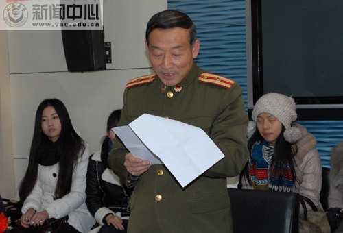 座谈会上,王延海同志宣读了《延安市宝塔区武装部征兵入伍命令》。根据命令,政法学院法学专业2010级学生耿雪、历史文化学院历史学专业2011级学生张莉、计算机学院信息与自动化专业2010及学生胡艳子、教育科学学院初级教育专业2011级学生彭丽远、鲁艺学院舞蹈专业2008级学生朱晨晨及2009级学生牛丽娜、体育学院体育教育专业2011级学生马欢及王慧君等8名学生作为应征入伍的大学生士兵,将赴新疆、甘肃省军区和南海舰队某部服役。