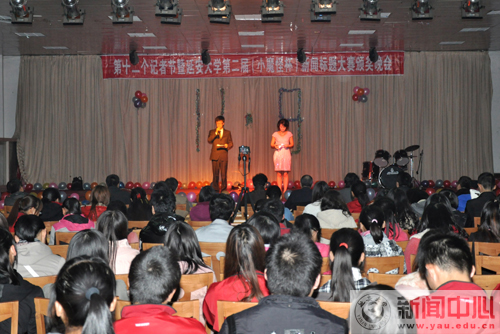 颁奖晚会在学生乐队XJ激情演绎的《公路之歌》和《恋爱进行时》中拉开帷幕。由管理学院市场营销2009级郭庆朗诵的《我们是记者》,用朴实的语言诉说了记者的心声。“我们连三等奖也没得上,何况还二等奖呢!”在悲凉的音乐衬托下,用滑稽的演技和对话所表演的相声《两个弄潮儿》,引来了场下观众的阵阵笑声和掌声,这是由文学院新闻2011级的张均和生命科学学院生物2011级的赵鹏为大家表演的。此外,歌曲《改变自己》、《飞得更高》、《吉祥如意》等节目在五彩的舞台灯光映衬下,表演者精神饱满,倾情演绎,为整场晚会增添了一抹绚丽的色彩。