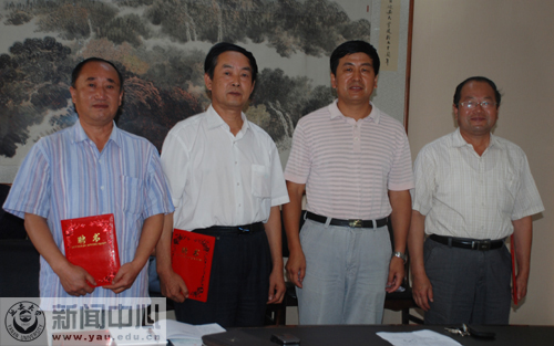 随后,举行了首届研究生教学督导组成员的聘任仪式。聘任仪式上,许静洪副校长为督导组成员郭金保、李丕高、魏久尧颁发了聘书,督导组组长郭金保教授作了表态发言。