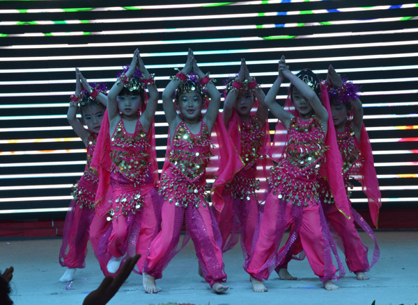 文艺演出节目丰富多彩,有舞蹈、歌曲独唱、合唱、表演唱、角色剧等,开场节目是大二班的《庆祝六·一》、《清早听到公鸡叫》集体歌舞。活泼优美的舞姿,激动四散的歌声,惟妙惟肖的表演,博得了全场观众阵阵热烈的掌声和喝彩声。随后各班幼儿表演了精彩纷呈的文艺节目,中班小朋友的舞蹈《捉泥鳅》淘气可爱,观众忍不住拍手叫好,大一班的才艺展演《小苹果》一下子把大家带入了动感世界,都不自觉得随小演员的鼓点节拍扭了起来。