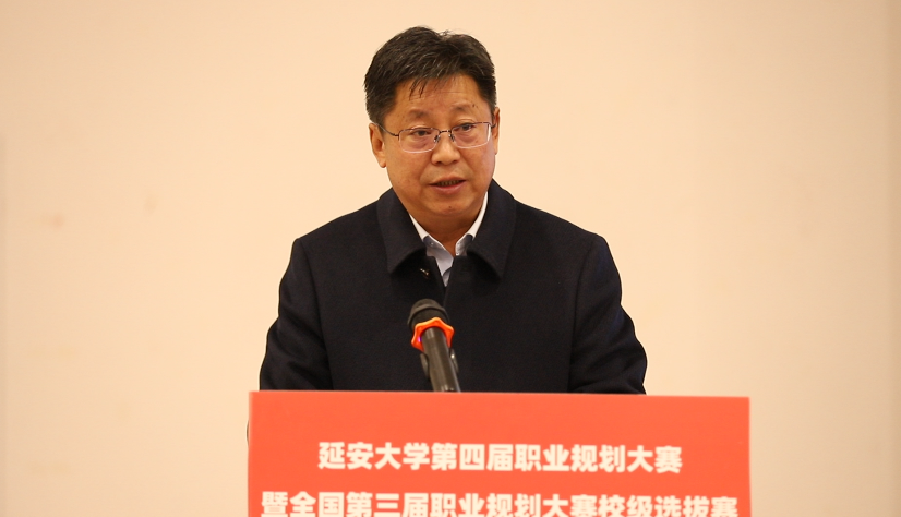 吕达在致辞中指出职业规划大赛不仅是赛事平台,更是引导学生审视自我、探索未来的重要载体,是落实立德树人根本任务、服务国家战略与青年成长的生动实践。他就本次大赛对广大学子提出三点希望:一是以规划为基,立足现实、放眼长远,科学谋划个人发展路径;二是以行动为桨,珍惜在校时光,积极投身实践,不断提升综合能力;三是以时代为帆,胸怀家国、勇担使命,传承延安精神,将个人理想融入国家需要,在服务基层和奉献社会中实现人生价值。