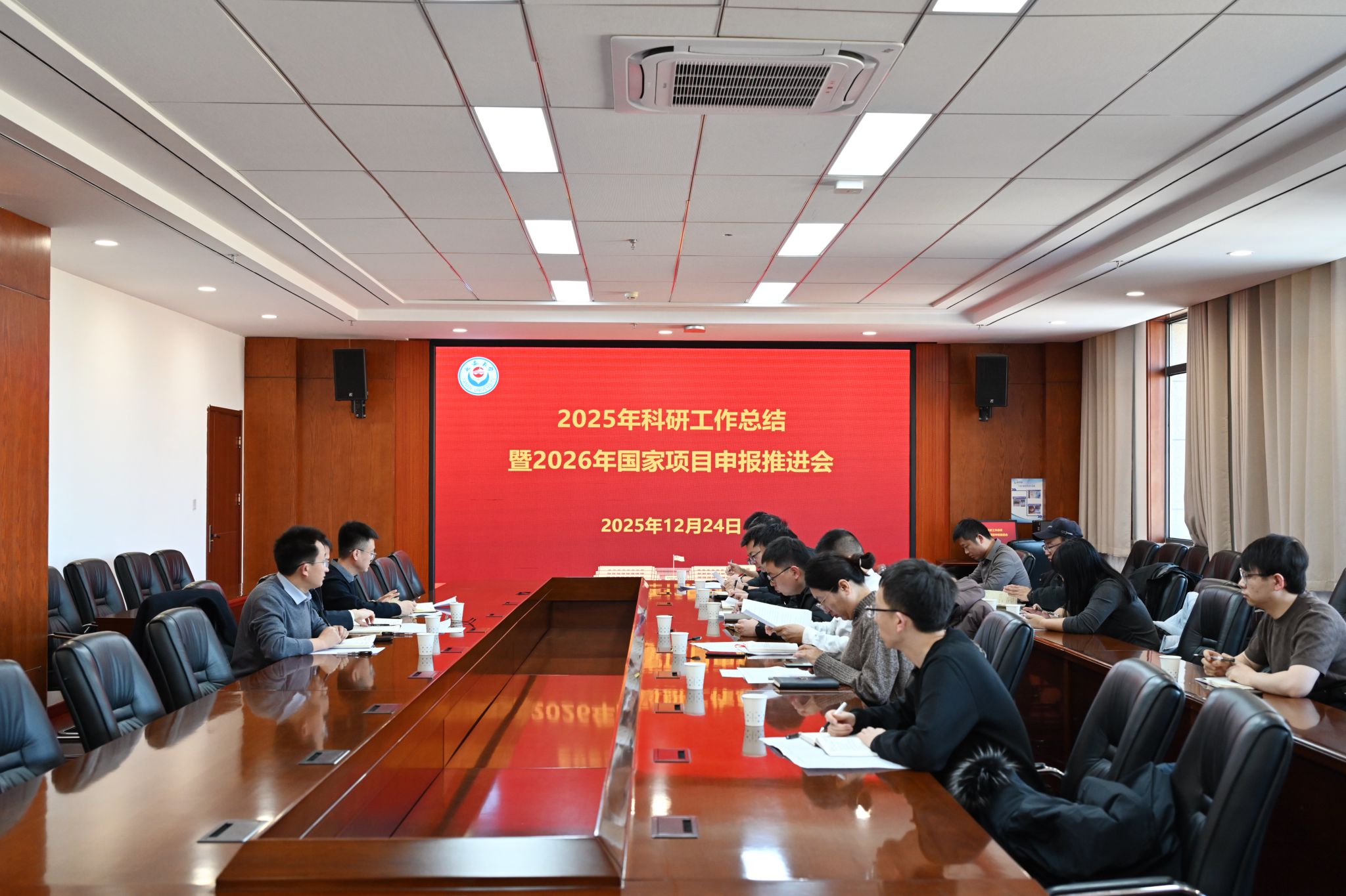 本网讯 12月24日下午,我校在行政楼7楼会议室召开2025年科技工作总结暨2026年国家自然科学基金项目申报推进会。副校长吕磊出席会议并讲话。理工科7个学院科研副院长、科研秘书,感运中心相关负责人及科技处全体成员参加会议,会议由科技处处长白宗文主持。