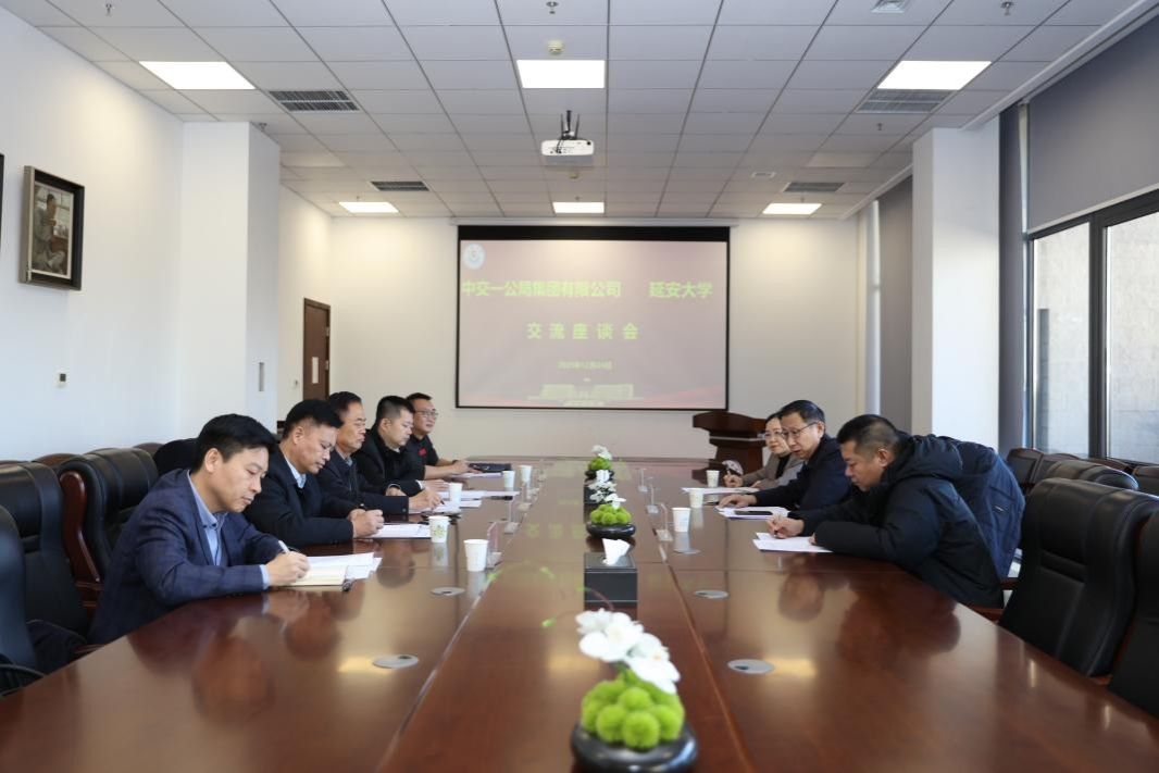 王延峰对李建军一行表示热烈欢迎,并详细介绍了延安大学的光辉校史与发展成就。他指出,延安大学是毛泽东同志亲自命名、中国共产党创办的第一所综合性大学。近年来,学校紧扣“更有特色、更有水平”总目标,在红色育人、学科建设等方面成果丰硕,同国内外高校、科研院所及企事业单位建立了多方合作关系,校企融合是学校深化教育综合改革的重要方向,期待以此为契机与中交一公局集团携手共赢。