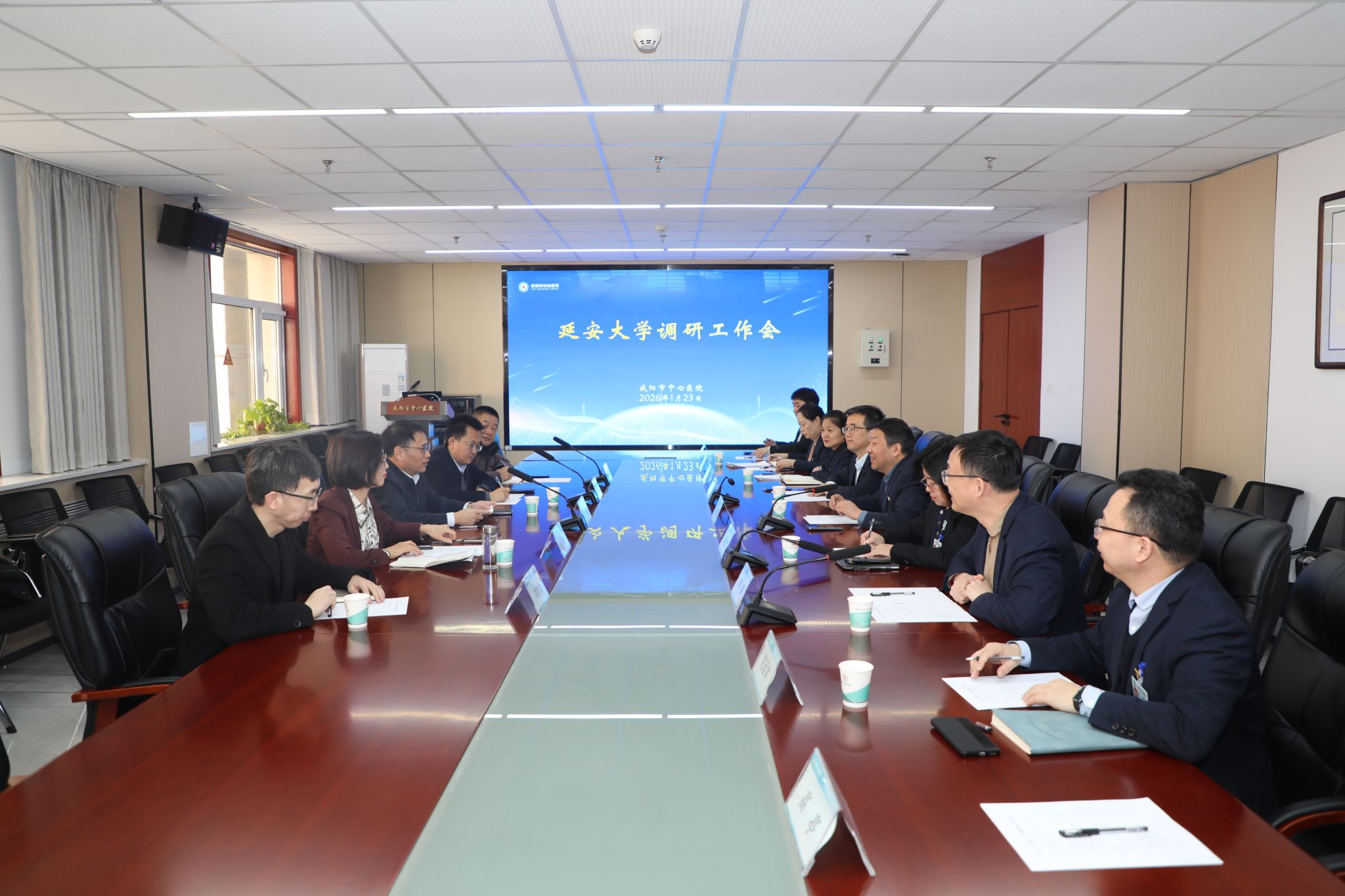 本网讯 1月23日,延安大学党委委员、副校长吕磊带领科技处、延安医学院相关负责人等一行五人,先后赴西安大兴医院、咸阳市中心医院及延安大学咸阳医院开展专题调研。本次调研围绕科研平台共建、科研项目申报、成果转化落地及科技奖申报等重点工作,与各教学医院进行了深入交流。