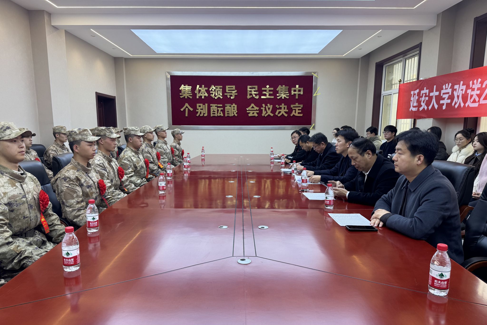 本网讯 3月12日和19日,我校分别在宝塔区人民武装部和延安市军分区欢送2026年春季选择从学校应征入伍大学生。校党委副书记吕达出席并讲话,学工部(武装部)负责人、各相关学院副书记、辅导员、部分应征入伍学生家长、退伍学生代表以及部分在校生代表参加活动,武装部副部长王彦杰主持欢送会。
