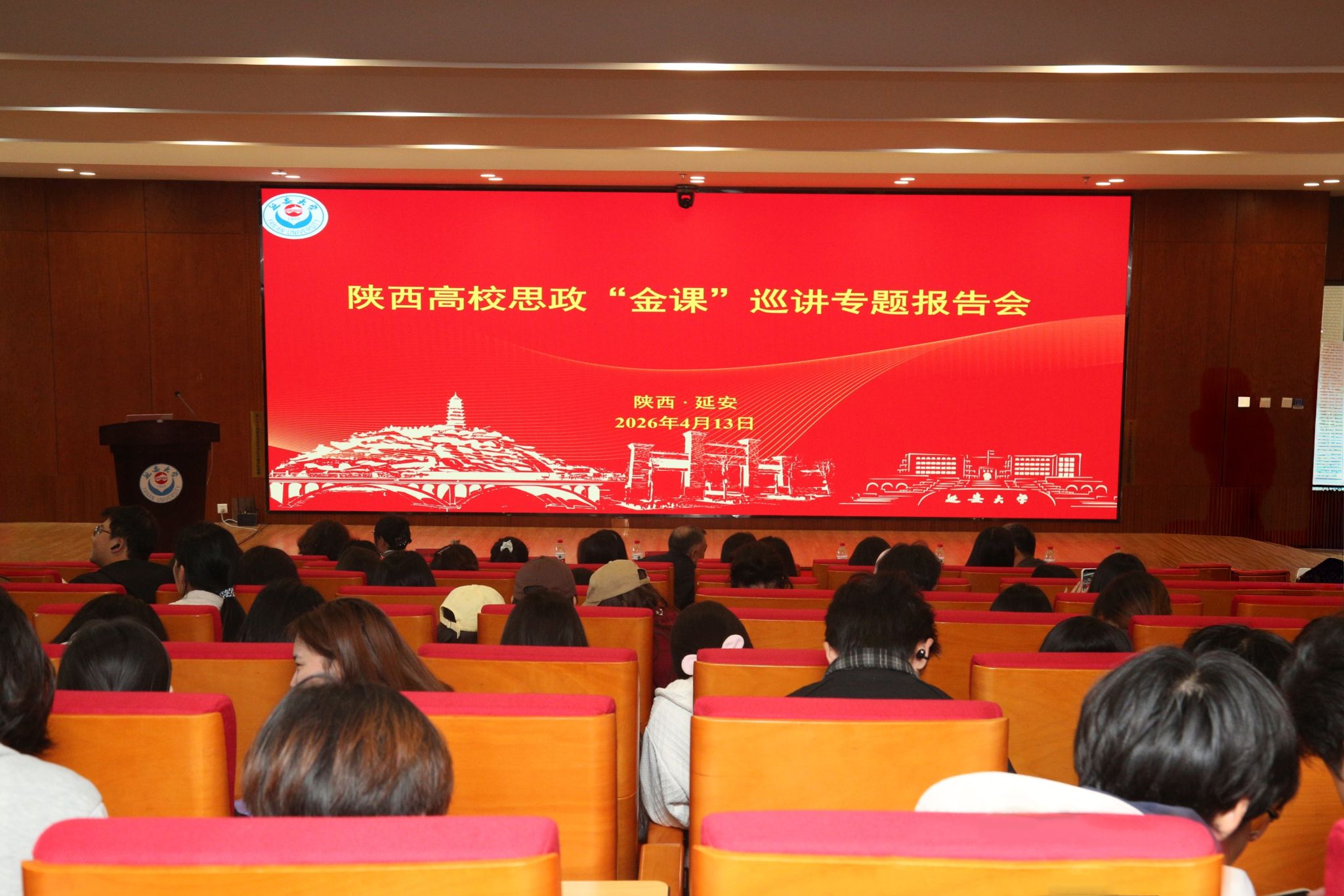 本网讯 4月13日下午,陕西高校思政“金课”巡讲报告会(第二场)在延安大学举行。西安理工大学马克思主义学院副教授冯晓霞、我校马克思主义学院教授冯菊香分别以“中国共产党的百年奋斗史”“延安精神代代相传”为主题作专题报告,全校思政课教师、学生代表200余人共同聆听。活动由我校马克思主义学院院长高布权主持。