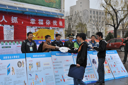本网讯 在第23个全国消防日来临之际,11月9日上午,我校保卫处、派出所联合延安市公安消防支队和宝塔区公安消防大队,共同开展了“11·9”消防知识进校园活动。