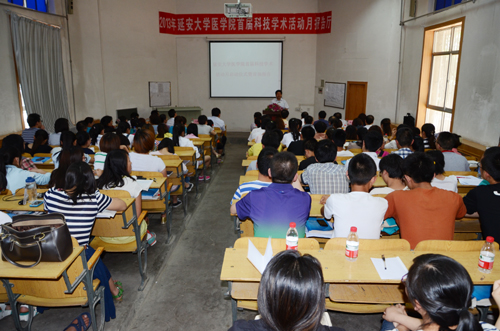 启动仪式结束后,来自复旦大学医学院肿瘤医院博士生导师欧周罗,为医学院师生作了《趋化因子与肿瘤》的主题报告。欧周罗教授以幽默的话语讲解了趋化因子与肿瘤研究的前沿问题,也对自己多年来的教学研究心得进行了总结。会场气氛轻松活跃,师生积极互动探讨问题。讲座结束后,参加报告会的教师和学生就肿瘤分子生物学问题与欧周罗教授进行了交流。