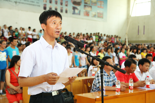 我校体育工作委员会副主任、教务处处长武忠远致了开幕词。他在致辞中指出,这次活动是我校开展阳光体育运动教学成果的一次集体展示,也是实现我校学生“中国梦”的一次精神状态体现,比赛将成为我校阳光体育运动开展的新起点,有效促进全员参与性体育锻炼风气的形成。他希望更多学生以这次比赛为契机,主动加入到体育锻炼的行列,努力做到人人锻炼、人人健康、人人快乐;希望运动员以饱满的热情参加比赛,赛出优异、赛出风格、赛出水平,展现我校学生朝气蓬勃、团结协作、自强不息的精神状态。来自体育学院的学生翟爽和教师高鹏分别代表运动员和裁判员宣了誓。随后,王亚杰书记宣布比赛开始。