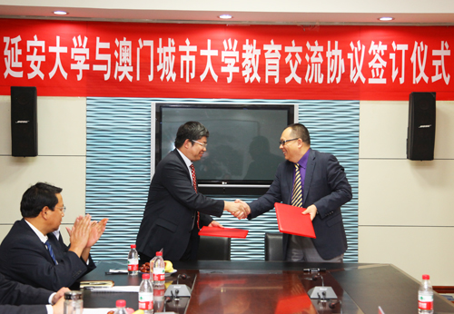 本网讯 今天下午3点,我校与澳门城市大学教育交流协议签订仪式在我校逸夫楼第三会议室举行。我校副校长张威虎,澳门城市大学副校长邢文祥、总监助理徐艳萍、教务处处长洪光华,我校教务处处长武忠远、学生处处长韩卿元、人事处处长杜红荣、研究生学院副院长付峰、国际处副处长杨向宏等参加了仪式。签订仪式由我校国际文化交流学院院长吴卫东主持。