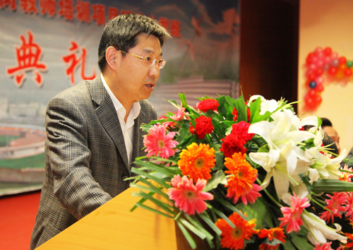 许静洪副校长在开班典礼上致了辞。他在致辞中指出,举办这次农村幼儿园新入职转岗教师培训班,必将进一步加强我校与陕西省教育厅和延安市的合作,更好地整合并充分利用我校优质的教育资源,充分发挥我校教师教育专业的资源优势,提高参加培训教师的教育教学能力和专业化水平,更好地发挥参加培训教师在实施素质教育、推进教育改革和教师培训中的骨干带头作用。他希望各位学员们能够充分认识到“国培计划”的重要意义,珍惜本次研修机会,以积极的态度和饱满的热情投入到学习中,认真全面地完成各项培训任务,不断提高自身业务水平,为陕西学前教育的改革与发展做出更大的贡献。随后,罗昆山副主任和韩志强副局长先后讲了话,对学员们提出了殷切希望。