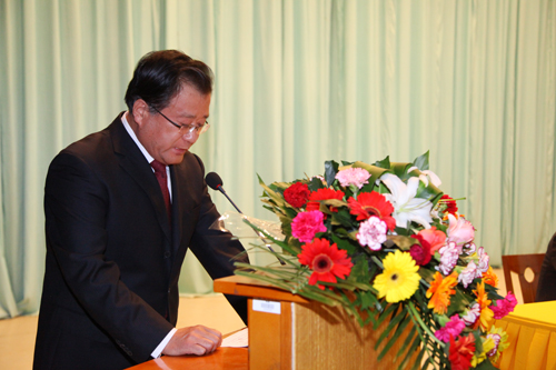 崔智林校长在致辞中希望2012级硕士研究生要尽快适应研究生生活,结合学校硕士研究生的培养目标,认真学习基础理论知识,积极参与导师的科研课题研究,参加技能训练和专业实践活动,培养专业兴趣;要端正治学态度,坚持求真务实,恪守学术道德,脚踏实地、严谨自律,坚决捍卫学术道德尊严,维护健康的学术环境;要把文化知识学习和思想品德修养紧密结合、创新思维和社会实践紧密结合、全面发展和个性发展紧密结合,在不断的学习中发展和完善自己的人生,成为理想远大,德才兼备,勇于创新的人才。
