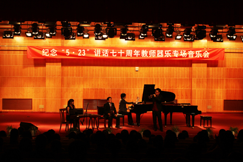 本网讯 为了纪念毛泽东同志《在延安文艺座谈会上的讲话》发表70周年,5月28日晚,由鲁迅艺术学院主办的纪念“5·23”讲话七十周年教师器乐专场音乐会,在我校星海楼5·23音乐厅举行。学校有关单位负责人和300多名师生共同观看了演出。