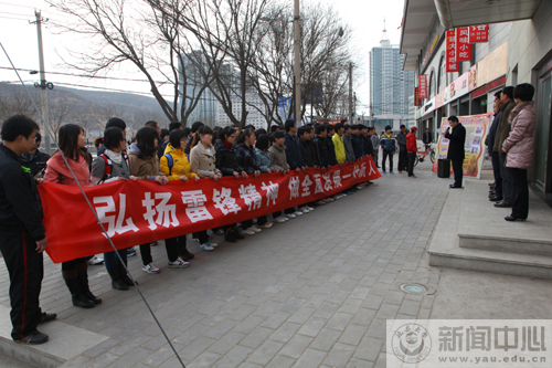 本网讯 今天是3月5日,是毛泽东同志“向雷锋同志学习”题词49周年纪念日,为了把学雷锋活动推向深入,促使学雷锋活动的常态化,能源学院党总支在二大门提款机房门口举行了2011年学雷锋活动表彰大会暨2012年学雷锋活动启动仪式,学生处处长韩卿元、副处长马小惠,团委副书记李伟,能源学院党委书记吴东兵、副院长白亚军、贺亚维,以及能源学院学雷锋标兵和部分学生代表70余人参加了表彰大会暨启动仪式。仪式由能源学院党委副书记张翔主持。