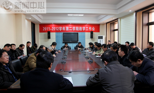 本网讯 2月24日下午,我校举行2011至2012学年第二学期教学工作会议,详细安排部署了本学期的各项教学工作。各学院、部、中心主管教学的院长(主任),教学秘书、教务员,以及评估处、教材中心、资产处、后勤处、教学督导团等部门的主要负责人和教务处全体工作人员参加了会议。会议由教务处处长武忠远主持。